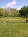 2.Continue placing your boundaries with the stakes sharing grommet holes on the shorter yellow end lines and the black no-spike zone lines. After first “eyeballing” square lines, adjustments can be made to achieve a near perfect rectangle.